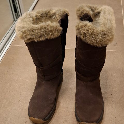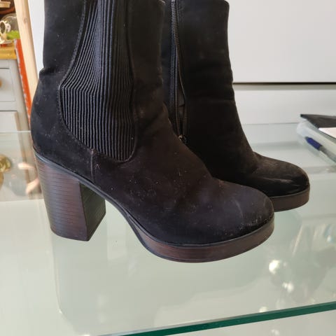 Høye blanke svarte støvler med godt grep - enkle å ta på. Kjøpt på Zalando for 399. Brukt én vinter - i god stand.