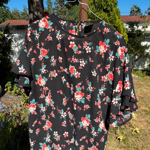 Kjempe lekker med knytebånd foran og vintage print.