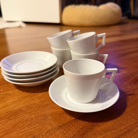 5 kaffekopper med skåler