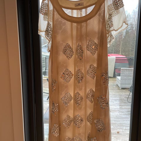 Kort hvit kjole fra ASOS med åpne overarmer og steindetaljer. Ikke brukt.