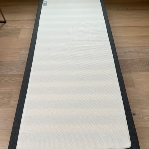 Selger brukt Jensen Royal rammemadrass, 90 cm bred. Bøyleben i tre følger med, samt Jensen Softline overmadrass (med nyvasket trekk). Noen bruksmerker, se bilder. Selges samlet for 1200,-. MÅ HENTES!