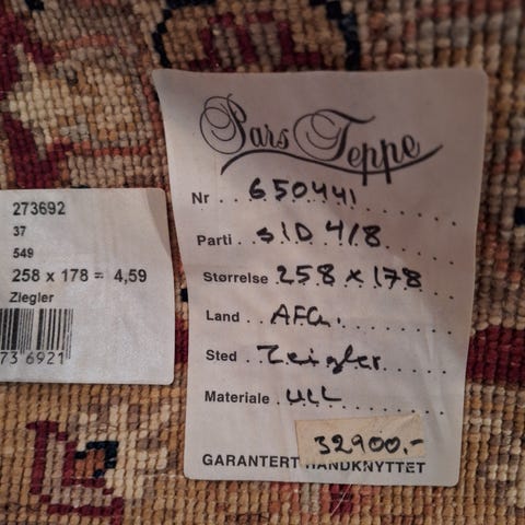 Pent brukt. Dette teppet er type "Persisk", men jeg vet ikke hvor det er laget :) Har vært i et røykfritt og dyrefritt hus.