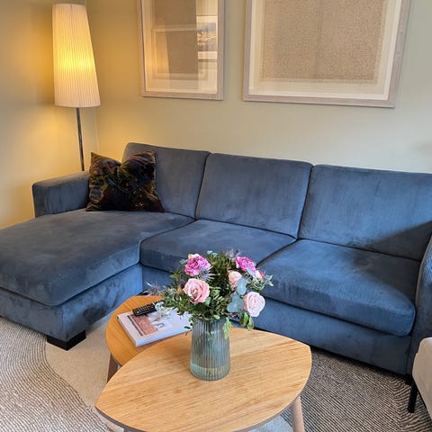 Blå 3-seter sofa med divan - Bohus -Nyrenset-Selges grunnet flytting. KUN5000