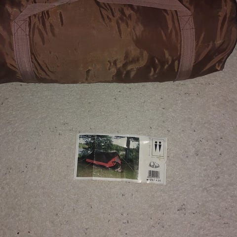 Teltet er i veldig god stand. En metallplate på stroppen er løs. Dette påvirker ikke teltets tilstand. Det er et stort soverom for tre personer og en gang med glidelås hvor du trygt kan oppbevare eiendelene dine over natten. Det har blitt brukt veldig lite, så jeg vil si at det er i veldig god stand.