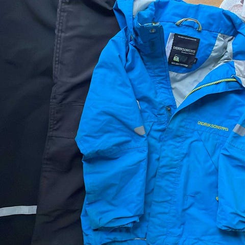 Selger en pent brukt høst/vår-jakke uten synlig slitasje, sammen med et par turbukser.