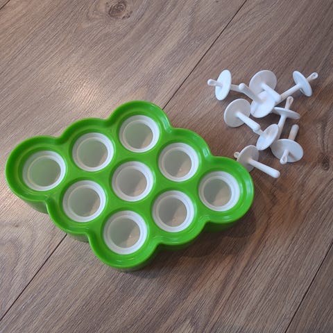 En form i resirkulert materiale fra barebrabarnemat. Perfekt for baby og småbarn for sunn småis. Kjøp ny for 399,- selges for 250,-