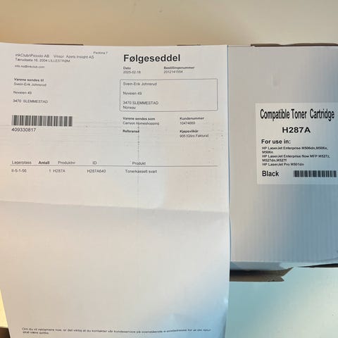 Skriveren støttet ikke produktet, da dette ikke er original. Selger derfor til halv pris evt bud.