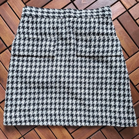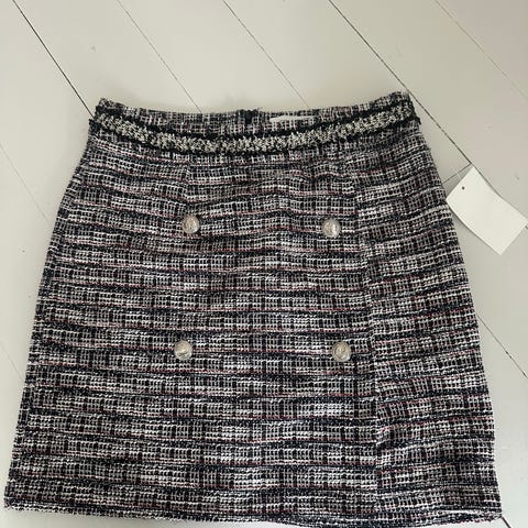 Skjørt i tweed med blå og sorte detaljer. Brukes dessverre ikke lengre, lite og pent brukt. Selges billig i forbindelse med flytting