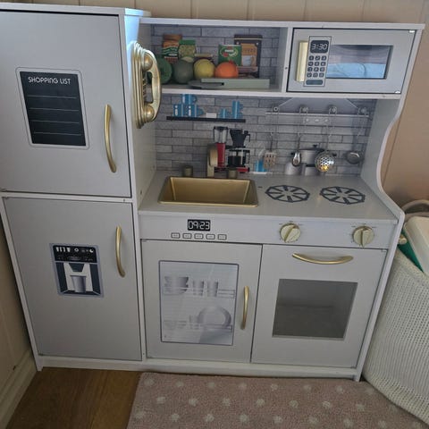 Unikt kvalitets- lekekjøkken i massivt tre, lekemat og servise