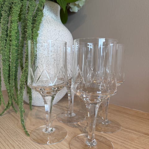 Crown vinglass – et sett med fire vinglass som byr på unikt design og funksjon. Glassene er laget av miljøkrystallglass av høy kvalitet med diamantslipt, blankpolert design.