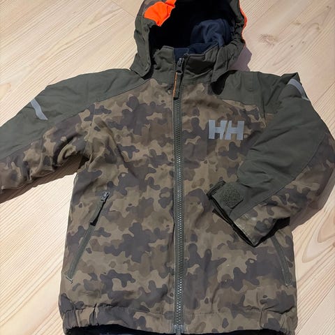 Pent brukt vinterjakke med velfungerende glidelås og borrelås. Snølås i livet for å slippe snø opp under jakken. Hetter har vi aldri brukt, og den som tilhører denne finner jeg ikke igjen.
