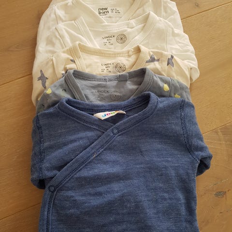 Her får du omtrent alt du trenger av klær fra nyfødt og frem til barnet er ca 4 år. Noe klær i størrelse 110 kan også forekomme.