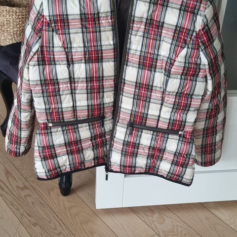 Pent og lite brukt vind/regnjakke fra Beaumont i Amsterdam. Fargen er hvit og str. er 38. Bryst- og sidelommer foran. Litt sidere bak enn foran. Lukning både med knapper og glidelås. Det følger med en liten pose til å ha jakken i.