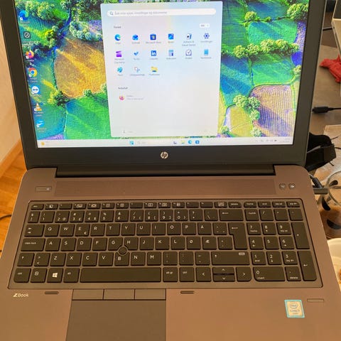 HP ZBook 15 G5 i7-8750H 16GB 1TSSD som jeg har bruk for et år til skolen. HAR bruksmerker, men di påvirker IKKE på hvordan den funker. Den er rask og kan mye. Har spilte mye dataspil på høye grafikk (Gta, sims, genshin, ets2, minecraft). Har en RAM 16GB, men har to spor til samen. Har selv byttet ssd til 1T, før det var 512.