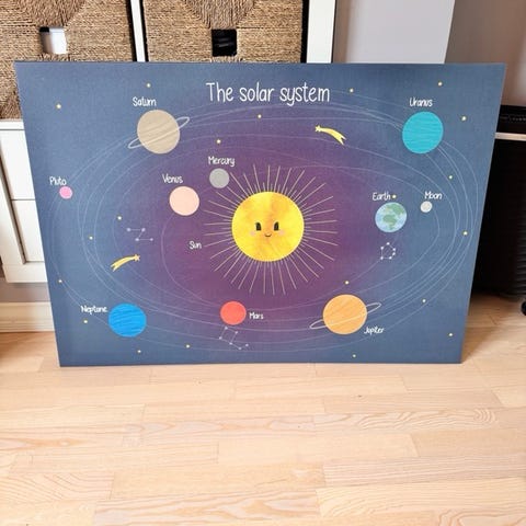 Pent brukte gulvmatter av månen og jordkloden. Selges som de er sammlet for 400.