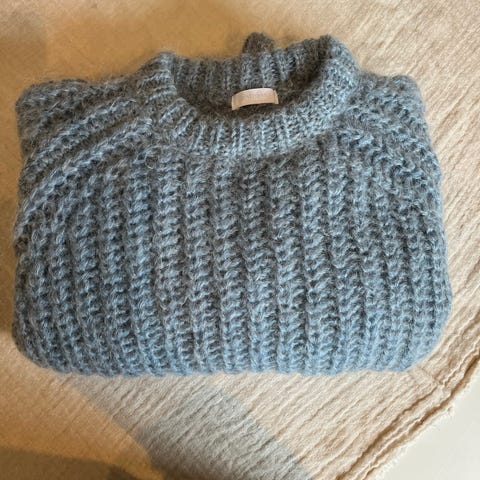 Nesten ubrukt. Bestilt fra Danmark. Veldig sjelden genser som kosta over 4000,- ny. Nydeleg blå farge. Tiltross for at den er nesten ubrukt fant jeg et hull i armhulen som lett kan syes sammen. Lapper det før sending.