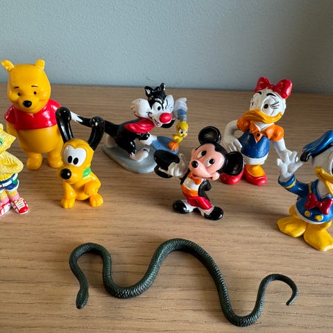 Disney figurer samling i plast, inkludert kjente karakterer i ulike farger. Figurenes design er detaljert og passer for samlere eller som leker for barn. Perfekt for de som ønsker å utvide sin Disney-kolleksjon.