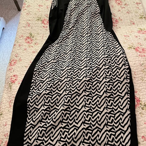 Lekker hvit med sorte blonde partier, stretch, helt ny med tags kjole selges rimelig.