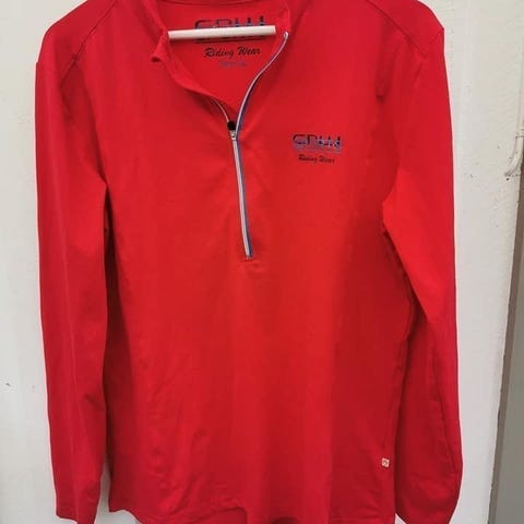 Adidas treningsgenser for dame i størrelse M. Genseren er langermet og laget i teknisk materiale egnet for trening og fitness. Den er rød med hvite Adidas-striper langs ermene og har høy hals med glidelås. Passer til innendørs og utendørs trening samt annen fysisk aktivitet.
