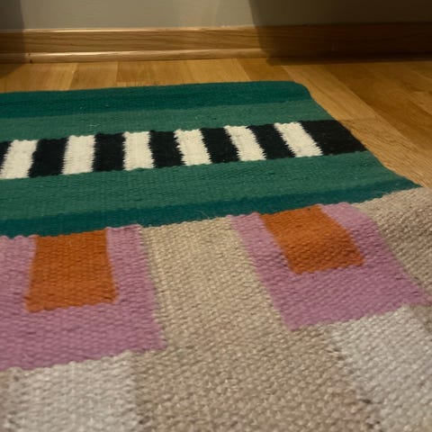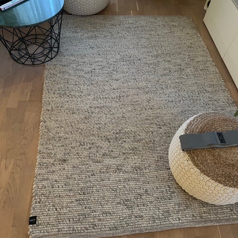 Pent brukt grått ullteppe selges da vi ikke lengre trenger dette.