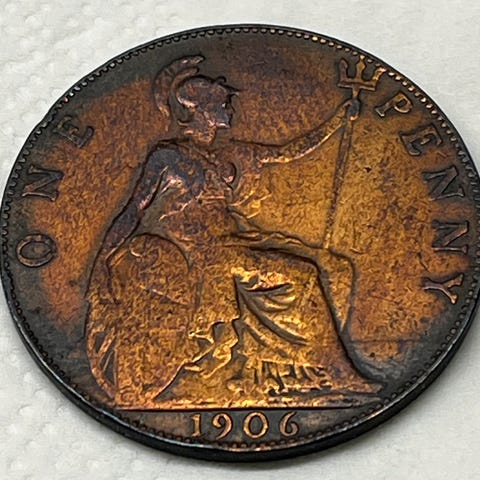 UK 🇬🇧 Sjelden britisk farthingmynt fra 1917