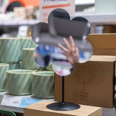 Speil som passer oppå ett skrivebord eller sminkebord.