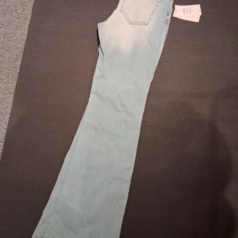 Fine hvite ZARA jeans i flare modell. Str. 36, men ganske små i str. vil si 34/36. Veldig fine, som nye, bortsett fra litt løst sydd tråd på baklommene (se de to siste bildene) som lett kan festes hvis man vil.