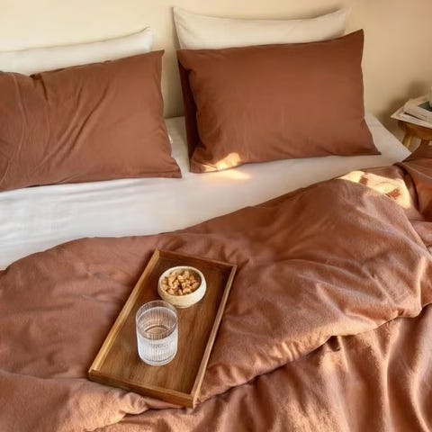 Ny og ubrukt. Fargen heter nougatbrun. Jeg vil kalle den brunrosa.