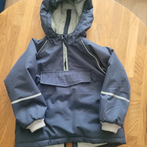 Pent brukt vår/høst-anorakk fra Reflex i str.104. Glidelås bak, som går helt opp i hetta - i tillegg til den foran. Lomme foran. Refleksdetaljer på armene og glidelås foran. Fargen er blå/grønn.