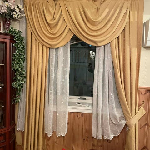 Selger fin gardin mål: Høyde 200 cm Bredde litt over 700 cm.