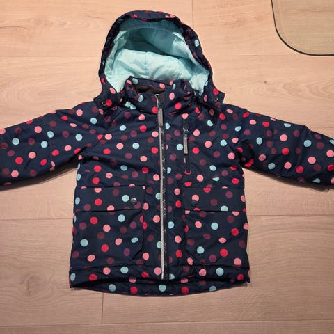 Søt jakke, mørkeblå med hvite hjerter og knallrosa for.