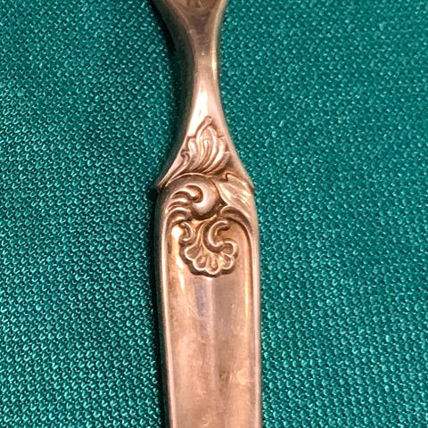 Lauridsens demitasse-skjeer er ofte kjennetegnet ved et gjennombrutt kroneterminal og innlagt koboltblå emalje på håndtaket.