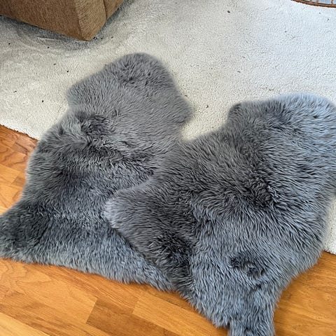 Imitert saueskinn - i fin blåfarge!