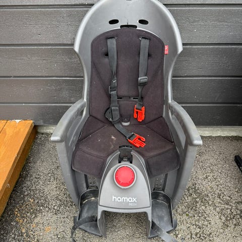 Selger et Hamax sykkelsete, med festebrakett. Må helst hentes i Larvik.