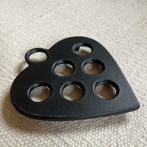 Selger en ubrukt eggform i rustfritt stål. Formen lager for eksempel egg eller pannekaker i stjerneform. Den er ca. 13 cm lang på det lengste fra kant til kant. Selges ettersom den aldri har blitt brukt.