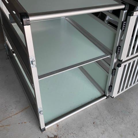 Et super robust og lett bur selges grunnet bytte av bil. Buret skrår både foran og bak for å passe i et bagasjerom. Bakveggen kan enkelt løftes av i tilfeller hvor man ikke får åpnet bakluke på bilen, f.eks. ved påkjørsel bakfra. Det er vanlige slitasjemerker som forventes ved bruk. Mangler to skruer til bakeplate, men det kan lett monteres på evt før salg (har ingen påvirkning på funksjon).