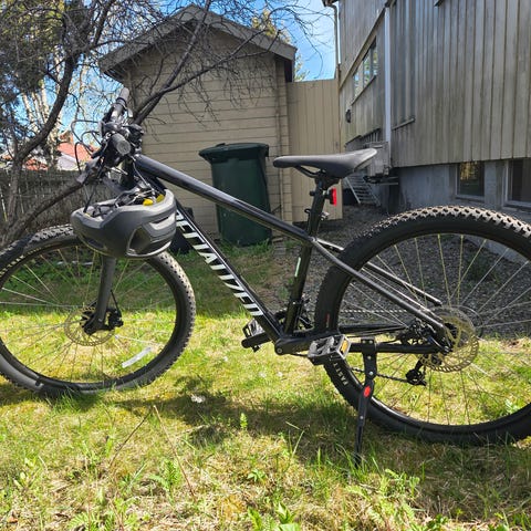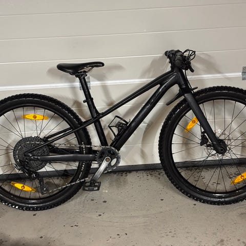 Specialized Rockhopper barnesykkel størrelse 29 tommer / small. Lite brukt, knapt en sesong er den brukt. Skjermer medfølger, håndtak og ratt er oppgradert, de originale delene medfølger. Drikkeflaskeholder medfølger også. Butikkpris i 2025: 9000.