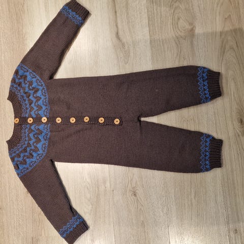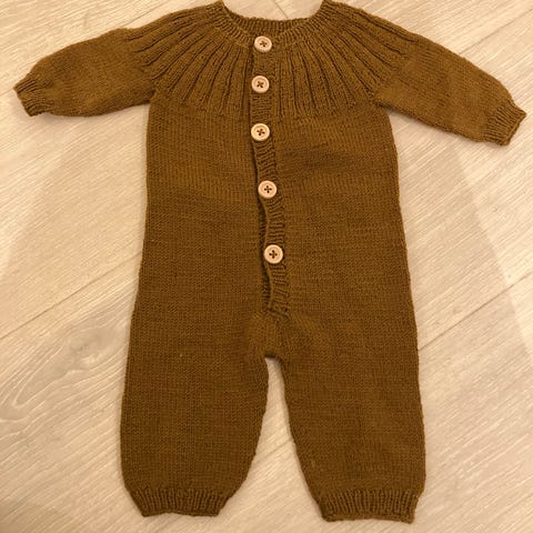 Nøttebrun, str 3-6 mnder, 100% merinoull. 500 kr.