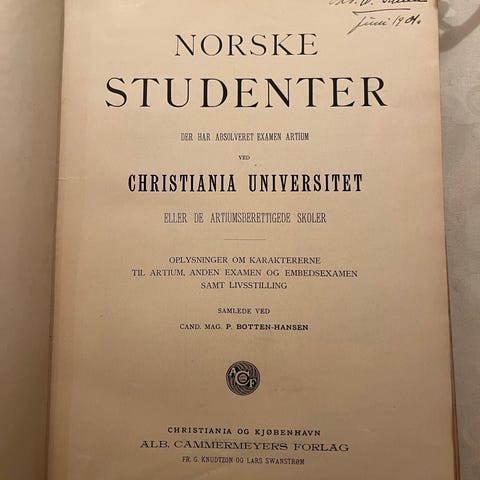 Samlede i Anledning af deres 25 Aars Studenter-Jubilæum af E. A. Thomle. Christiania 1893. Kan overleverast i Oslo eller sendast mot at kjøparen betalar portoen.