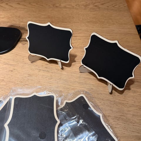 Små tavler for skilting av f.eks. ulike matretter. Whiteboardpennene kan brukes.