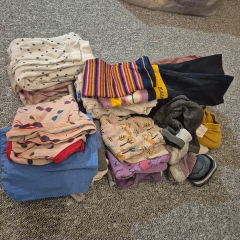 Pent brukt klespakke i str 92 I god stand, selger billig grunnet flytting. Mindre enn 10 kroner per stk(totalt 43 plagg uten å telle ull)