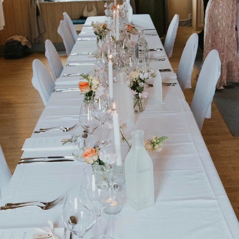- Selger også pakker med telysholdere og vaser i forskjellige størrelser og former. Flytelys gir en fin stemning i lokalet. Det er både pent, romantisk og morsomt med forskjellige vaser og telysholdere. Senk skuldrene på bryllupsdagen, konfirmasjonsdagen eller festen. Vi fikk hjelp av venner og familie til å putte blomster oppi vasene. Dette gjorde hver bukett og bord unikt! Se de siste bildene for inspirasjon.