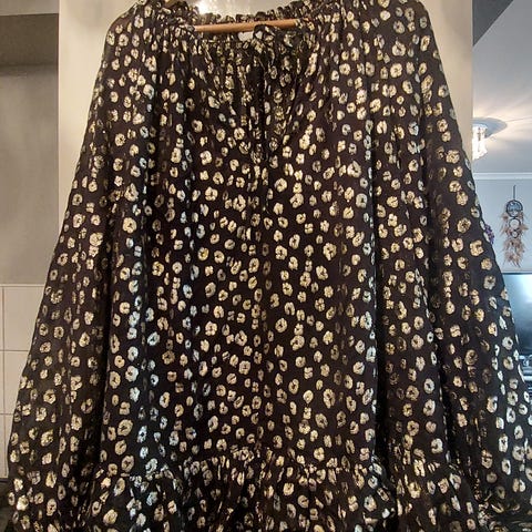 Kjempesøt lysegul kjole med broderier fra H&M størrelse L selges. Kjolen har strikk rundt ermene og broderiene rundt på hele kjolen. Fargen kommer ikke helt godt frem på bilder, den er en tanke mer gul. Kjolen er kun brukt en gang og fremstår som ny.