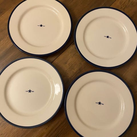 Selger 2 stk grå lexington krus + 2 store tallerkner til .