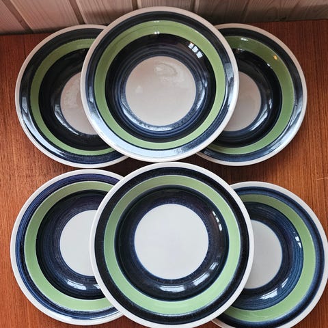 3 suppeskåler i serien Mecca fra Figgjo. Diameter 20 cm. Hele og pene, men de har brukerspor i bunnen. Selges 170,- ,- for alle. Sender post.