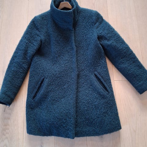 Melert sort/blå kåpe fra b.young i str. 40 selges kr 200.- Den har glidelås, 2 lommer, mønstret for og splitt bak. Den er i ullkvalitet ( 15 % ull) Kåpen har kun vært brukt ved en anledning.