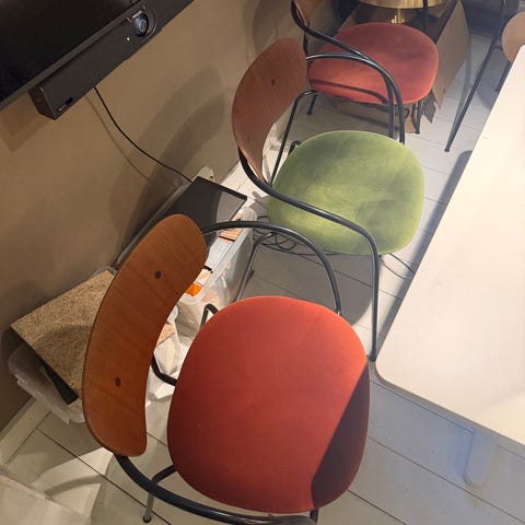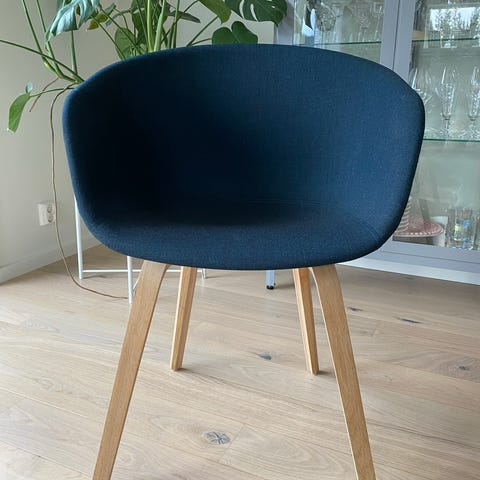 Brukt, men av den grunn fått en flott platina i det cognac frargede skinnet. Selger vår flotte stol for langt under halvparten av hva den koster ny.