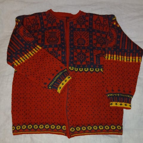 Håndstrikket jakke. Trondheim 1000 år