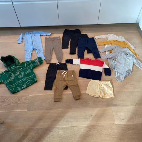Pent brukt klespakke i str 74/80. Pakken inneholder: