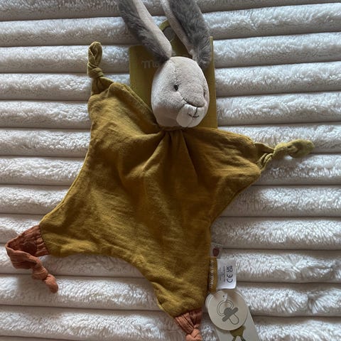 Koseklut og rangle i gult.